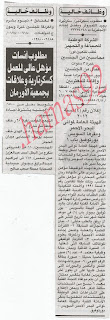 - اعلانات وظائف خالية من جريدة اخبار اليوم السبت 3\11\2012